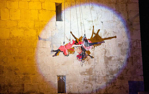 Dansa aèria, llums, música i colors es combinaren en una representació que va convertir l’emblemàtic edifici en un escenari com mai s’havia vist a la ciutat