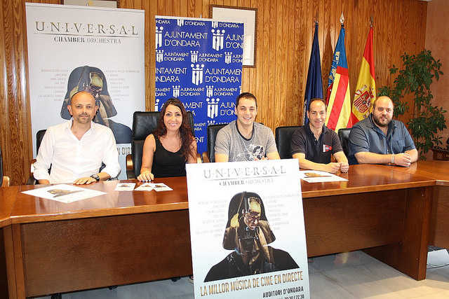 L’Auditori Municipal d’Ondara serà l’escenari d’un esdeveniment únic: l’estrena absoluta de la Universal Chamber Orchestra, que oferirà un espectacular concert de cambra amb la millor música de cine. La cita musical tindrà lloc el dissabte 10 de setembre i hui ha estat presentada a l’Ajuntament d’Ondara, amb la presència de la Regidora de Cultura, Raquel Mengual; el Regidor de Promoció Econòmica, José Ramiro, el director de la Universal Chamber Orchestra, José Martínez Colomina, i els representants d’AljubMusic, (Associació promotora del concert), Emilio Sentí i el músic Javier Gil Pérez.