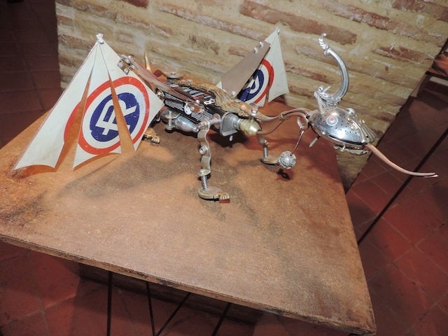 “Segona Vida” és una mostra de ferralla que cobra vida, de llaunes que es converteixen en persones, animals o robots i de fils d’arams que ens proposen nous horitzons per a la ment.