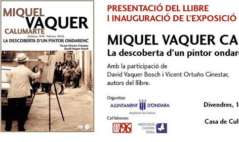Demà divendres 14 d’octubre, a les 20 hores a la Casa de Cultura d’Ondara, es presentarà el llibre i s’inaugurarà l’exposició titulada “Miquel Vaquer Calumarte. La descoberta d’un pintor ondarenc”, amb la participació de David Vaquer Bosch i Vicent Ortuño Ginestar, autors del llibre.