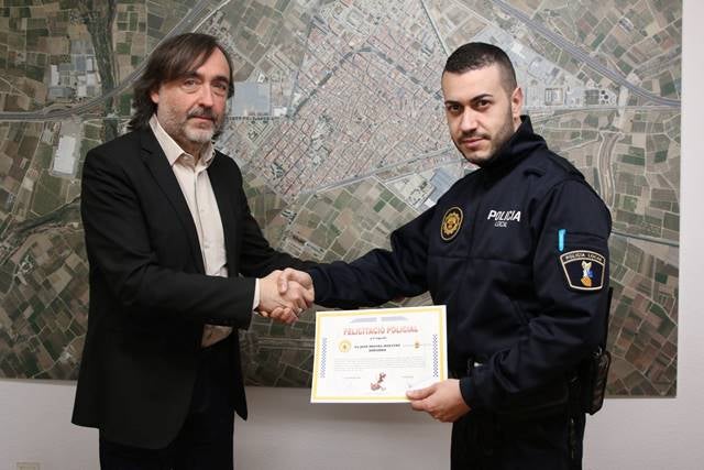 Ahir al matí l’alcalde va fer entrega d’una felicitació policial a l’agent Jose Miguel Maestre Miñarro per reconèixer la seua llavor professional i humana, en una actuació duta a terme el passat 22 de desembre, tal i com els tutors del menor accidentat van manifestar en un escrit enviat a l’Ajuntament de l’Alcúdia.