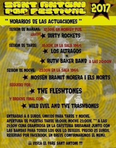 Dissabte 21: “XI Sant Antoni Pop Festival” al “Saló 1964” (“Brisamar”). Preu de les entrades: 8 euros