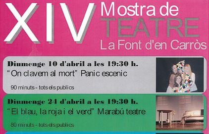 El dissabte 25 de juny, a les 20.30h, i el diumenge 26 del mateix mes, a partir de les 19.30h, es podrà gaudir de la preestrena “Nina o l’amor” de Kabuts Teatre, mentre que l’acte de cloenda de la XIV Mostra de Teatre a la Font d’en Carròs serà el mateix diumenge.