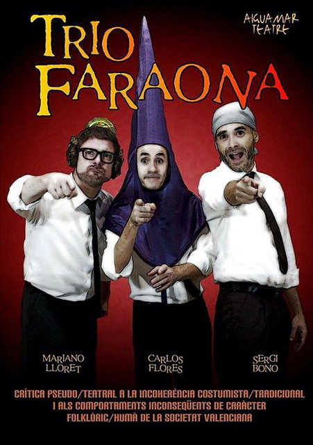 La companyia saforenca Aiguamar Teatre posarà sobre l’escenari el seu últim èxit: «el Trio Faraona». Com diuen ells mateixos, «una crítica a la incoherència costumista/tradicional i els comportaments inconseqüents de caràcter folklòric/humà de la societat valenciana».
