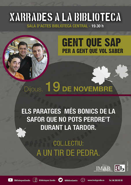 Toni Ordiñana, coordinador de les biblioteques, ha destacat que “Si vols descobrir alguns d’estos llocs i gaudir d’ells esta tardor, no pots perdre’t esta xarrada”. Els tens molt prop, tan prop com Un Tir de Pedra.