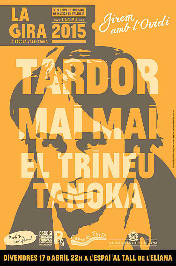 La Gira 2015 d’Escola Valenciana – amb més de 150.000 assistents en els vora 300 concerts celebrats en les convocatòries anteriors- que acompleix 10 edicions de promoció de la música en valencià-, duu el nom de “Girem amb l’Ovidi”, homenatge que Escola Valenciana ha volgut dedicar al cantant d’Alcoi de la mort del qual s’acompleixen enguany 20 anys i, per això, tots els cartells dels diferents concerts d’aquesta desena edició duran la imatge d’Ovidi Montllor com a símbol de la música en valencià.