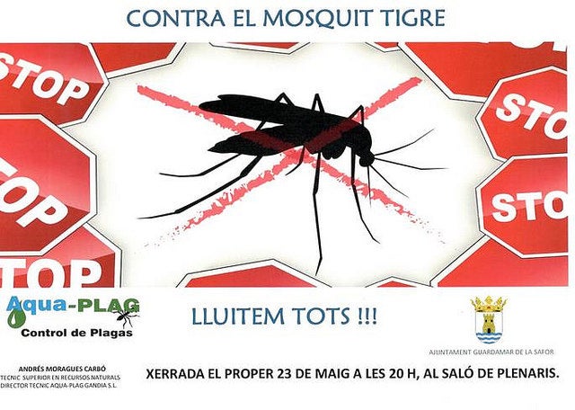 Dilluns 23 de maig a les 20:00 Al saló de plenaris de l’Ajuntament de Guardamar de la Safor Xerrada de com es deu de previndre el mosquit tigre. Us esperem