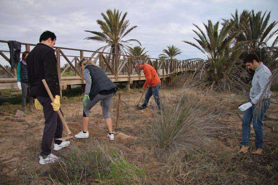 Jornada de retirada d’espècies exòtiques invasores en la marge esquerra de la desembocadura del riu Segura per part de l’Associació de Naturalistes del Sud-est (ANSE) i voluntaris en col·laboració amb l’Ajuntament de Guardamar del Segura.