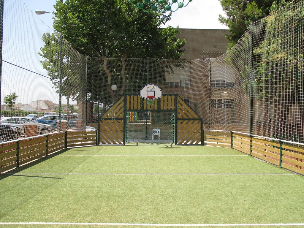 Aquest multiespaci esportiu, en el qual poden practicar-se esports tan diversos com el futbol, hoquei, volleyball, bàsquet, mini-tennis, futvolley i bàdminton, incorpora paviment de gespa artificial homologada, està envoltat de tanques de fusta i inclou porteries de futbol i canastres de bàsquet regulables i fabricades per a evitar actes vandàlics.