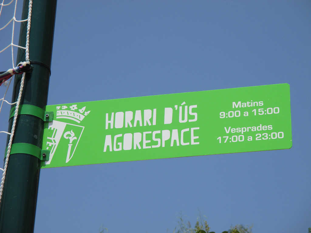 L’Ajuntament d’Almussafes col•loca cartells en els quals s’informa de l’horari d’ús dels dos ‘agorespace’ instal•lats en la localitat, amb l’objectiu de garantir el descans dels ciutadans que viuen en els voltants d’aquests recintes esportius. Així, s’ha establit que es podran utilitzar aquestes àrees recreatives pel matí, entre les 9 i les 15 hores i per la vesprada, entre les 17h i les 23h.