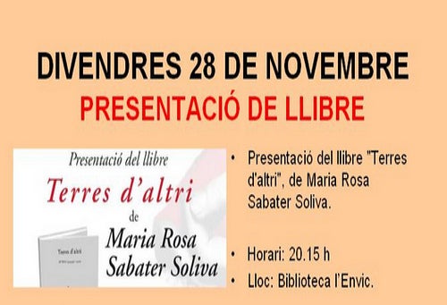 L’acte tindrà lloc a la Biblioteca de l’Envic el divendres 28 de novembre, a les 20,15 h.