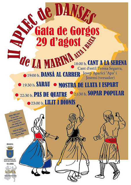 II Aplec de danses de la Marina Alta i Baixa A Gata de Gorgos el dissabte dia 29 d’agost A més hi haurà Cant d’Estil, A les 21.30 sopar popular A les 23.00h Lilit i Dionís Us esperem !!! AJUNTAMENT DE GATA DE GORGOS