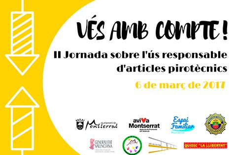 ‘Ves amb compte!’ és una campanya de prevenció d’accidents pirotècnics que posa en marxa per segon any consecutiu la Regidoria d’Educació de l’Ajuntament de Montserrat a través de l’Espai Familiar de Montserrat. Es tracta d’una jornada amb consells d’ús, que tindrà lloc el 6 de març a la Casa de la Cultura de Montserrat, entre els escolars de 8 a 14 anys del Col·legi Evaristo Calatayud i l’institut Alcalans, i que enguany, en col·laboració amb AVIVA Montserrat, l’Agència de Promoció del Valencià municipal, s’ha completat amb un sorteig entre aquells escolars que juguen a uns passatemps que contenen vocabulari valencià de la pirotècnia. En el fullet informatiu que conté els passatemps, també hi ha uns codis QR per a descarregar-se els cartells de la pirotècnia editats per la Diputació de València, i el full d’autorització d’ús de material pirotècnic.
