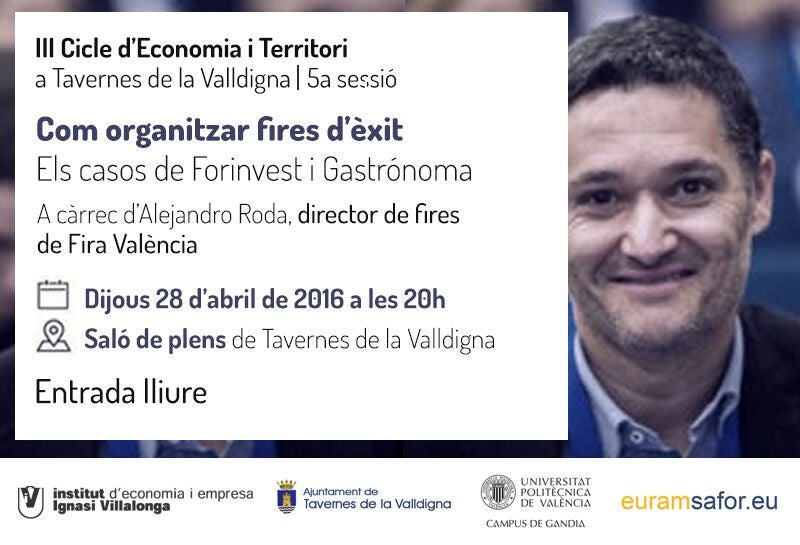 El III Cicle d’Economia i Territori continua amb la cinquena sessió sota el títol Com organitzar fires d’èxit. Els casos de Forinvest i Gastrónoma, a càrrec del director de fires de Fira València, Alejandro Roda.
