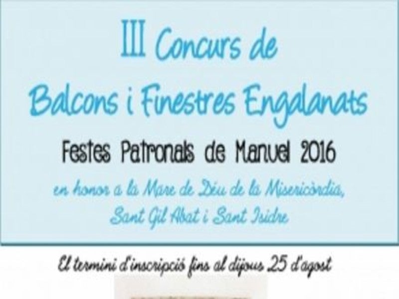 Manuel celebra el III Concurs de Balcons i finestres engalanats organitzat per la Confraria de la Mare de Déu de la Misericòrdia. Termini d’inscripcio: dijous 25 d’agost.
