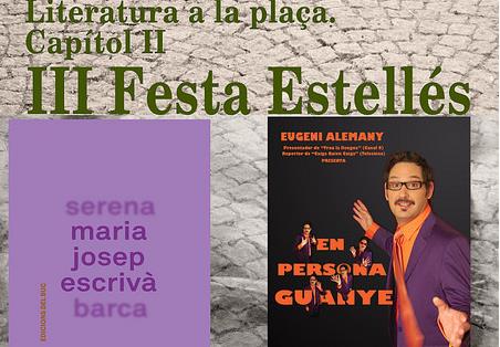 El divendres dia 9, organitzada per l’Ajuntament de Benifairó, tindrà lloc a la plaça Major la III Festa Estellés. Aquest any compta amb la presentació del poemari Serena Barca de Maria Josep Escrivà, qui estarà acompanyada per l’editor Francesc Bononad, d’edicions del Buc. També amb l’actuació del polifacètic Eugeni Alemany. I per descomptat el tradicional sopar de germanor.