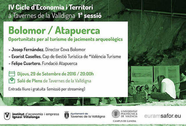 “Bolomor/Atapuerca. Oportunitats per al turisme de jaciments arqueològics” és la primera sessió del IV Cicle d’Economia i Territori que tindrà lloc el dia 29 de setembre.