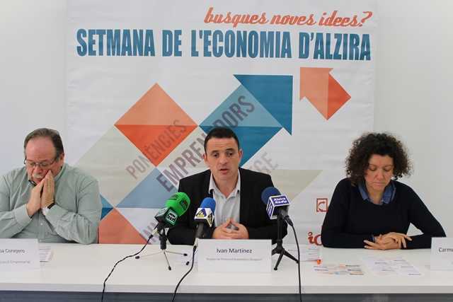 L’Ajuntament d’Alzira i l’Associació Empresarial d’Alzira han presentat hui la IX Setmana de l’Economia i l’Ocupació que se celebrarà a la Casa de la Cultura durant la setmana del 13 al 17 de febrer. En la presentació han participat el regidor responsable de l’àrea, Ivan Martínez, la directora d’IDEA, Carmen Herrero, i el president de l’AEA, José Villalba.