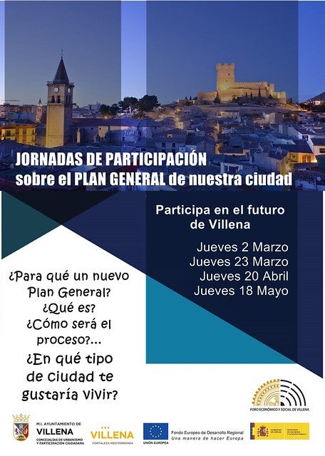 Des de l’Ajuntament de Villena i el Fòrum Econòmic i Social es convida a tota la ciutadania al fet que assistisca a les jornades i participe. “No volem solament informar, volem escoltar la ciutadania”, ha sentenciat Javier Román com a membre de la Comissió Permanent del Fòrum Econòmic i Social.