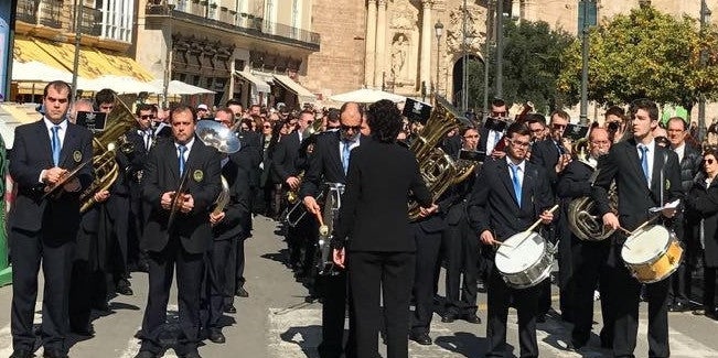 Ha sigut convidada a aquest acte perquè la seua directora Beatriz Fernández Aucejo era aquest any l’encarregada de dirigir la interpretació simultània del pasdoble “El fallero” a les 14 bandes que han desfilat.