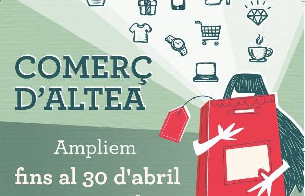 La regidora de Comerç, Anna Alvado, ha informat que la campanya de promoció del comerç local, ‘’Comerç d’Altea. El comerç del poble’’ que acabava hui, s’amplia fins al 30 d’abril. L’objectiu de la iniciativa, posada en marxa des de la regidoria de Comerç, és promocionar i estimular les compres als establiments locals, sorgida de les reunions mantingudes entre els comerços i la pròpia regidoria. Anna Alvado ha assenyalat que s’amplia el termini per participar aprofitant les compres de cara a la campanya de comunions i a petició dels propis establiments.