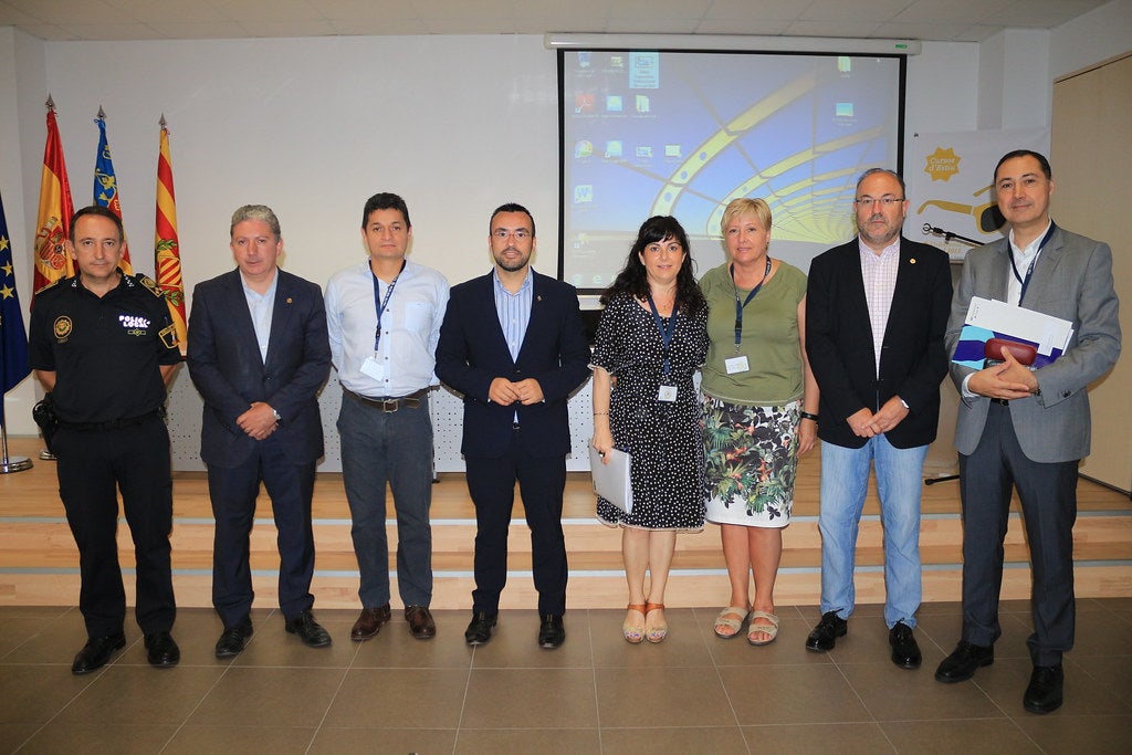 La Càtedra de Mediació Policial Ciutat Vila-real, impulsada per l’Ajuntament de Vila-real i l’UJI, ha inaugurat aquest matí el seu primer curs d’estiu que, amb el títol “La pràctica de la mediació policial per a la construcció de ciutadania”, formarà a uns 60 alumnes en la gestió pacífica de conflictes. D’ells, uns 40 procedeixen de la Policia de Colòmbia, entitat amb la qual la Policia Local de Vila-real manté una estreta col•laboració. L’alcalde de Vila-real, José Benlloch, i el vicerector d’Economia de l’UJI, Miguel Ángel Moliner, han inaugurat el curs, al costat de la directora de la Càtedra, Carmen Lázaro, i els regidors d’Universitats, Emilio M. Obiol, i Seguretat Ciutadana, Javier Serralvo.