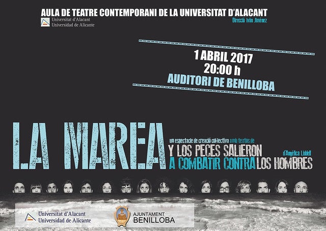 La programació cultural a l’Auditori continuarà el dissabte 1 d’abril i el diumenge 7 de maig. En primer lloc, amb una proposta del grup contemporani de l’Aula de Teatre de la UA, “La Marea. Y los peces salieron a combatir contra los Hombres” que es representarà en valencià el dissabte 1 d’abril a les 20 hores.