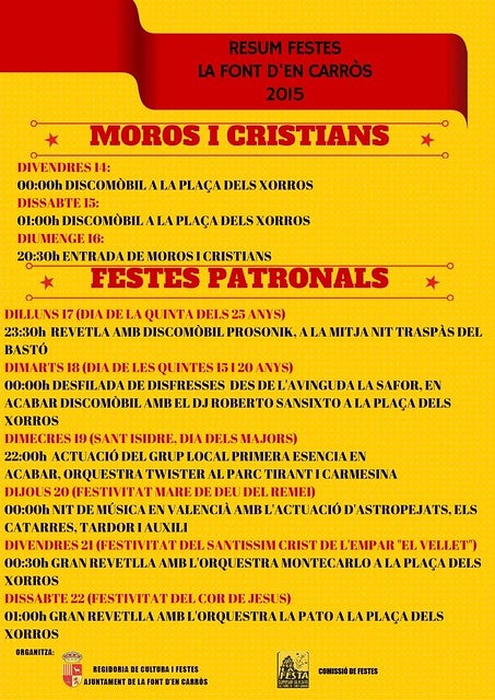 El divendres 21 és la festivitat del santíssim Crist de l’Empar, patró de la Font d’en Carròs. Enguany la festivitat té especial rellevància donat que cada 5 anys es celebra la Festa Quinquenal del Santíssim.