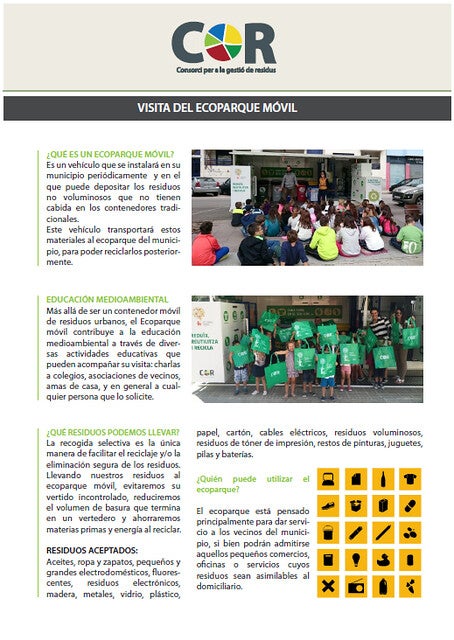 És un vehicle que s’instal·la periòdicament i en el que es poden dipositar els residus no voluminosos que no tenen cabuda en els contenidors tradicionals. Aquest vehicle transportarà aquests materials a l’ecoparc del municipi, per a poder reciclar-los posteriorment.