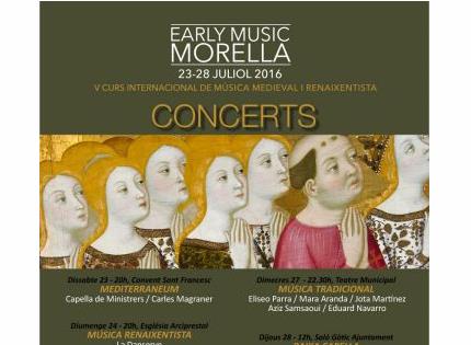 Early Music Morella es consolida com la trobada de música antiga més important del panorama musical europeu. El diàleg intercultural de la Mediterrània serà l’eix conductor de la seva V Edició que es desenvoluparà del 23 al 28 de juliol a la capital de la comarca dels Ports. Aquest certamen unifica turisme, cultura, patrimoni, música i tradició al voltant del context històric de l’antiga Corona d’Aragó i les seves relacions culturals i territorials en una Europa en plena expansió. En aquest sentit, s’han inclòs activitats extraordinàries i dedicarà tots els seus continguts a commemorar la figura de Ramon Llull amb motiu del 700 aniversari de la seva mort. Filòsof, escriptor i teòleg fonamental per entendre el veritable sentit del diàleg intercultural en territori mediterrani.