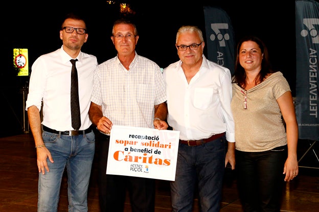 Cáritas va ser protagonista del segon descans, en esta ocasió no va haver-hi problemes per a pujar a l’escenari, on es van personar la regidor Mar Mazo, el representant de Cáritas José Mª Moreno i l’alcalde Enric Esteve.