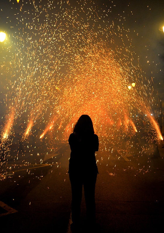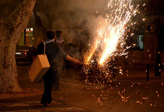- El foc de pólvora, amb les rodes de foc que es realitzen en determinats punts del recorregut, i amb la fila de “coheters” de l’associació Amics de la Passejà, que encenen lluminàries i coets d’eixides, subjectats amb unes tenalles de fusta.