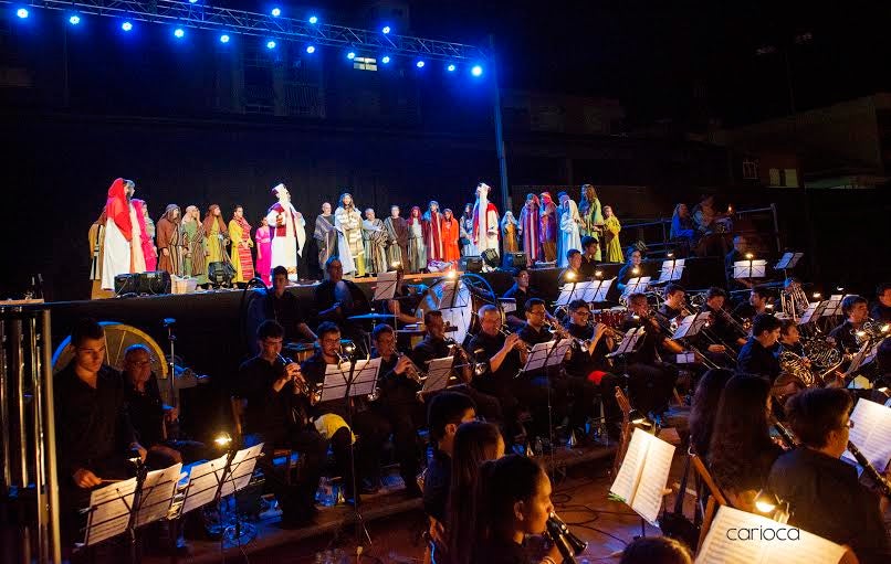 El programa de les Festes Patronals d’Almussafes 2014 va arrancar, dissabte passat dia 28, amb la Gala Artístic Musical, que es va celebrar a partir de les 23 hores en el pati del CEIP Almassaf. Centenars de veïns i veïnes es van donar cita en el recinte educatiu per a disfrutar d’un espectacle dissenyat conjuntament per la Societat Musical “Lira Almussafense” i la parròquia Sant Bartomeu, en el que es va interpretar i va escenificar, per primera vegada en la localitat, la simfonia “La Passió de Crist” del compositor Ferrer Ferran.