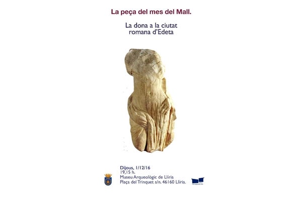 Torna la “Peça del Mes” del Museu Arqueològic de Llíria i ho fa amb “La dona en la ciutat romana d’Edeta”. En esta ocasió, el Museu serà l’escenari per a dur a terme l’activitat dijous que ve 1 de desembre, a les 19.15 hores.