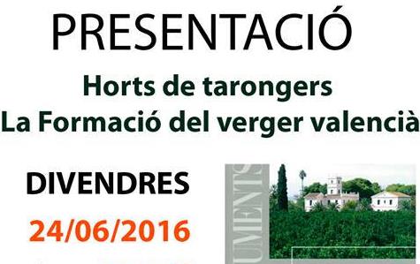 Divendres 24 de juny Presentació de llibre d’Adrià besó Horts de tarongers – La formació del verger valencià A les 19.30h A la biblioteca municipal