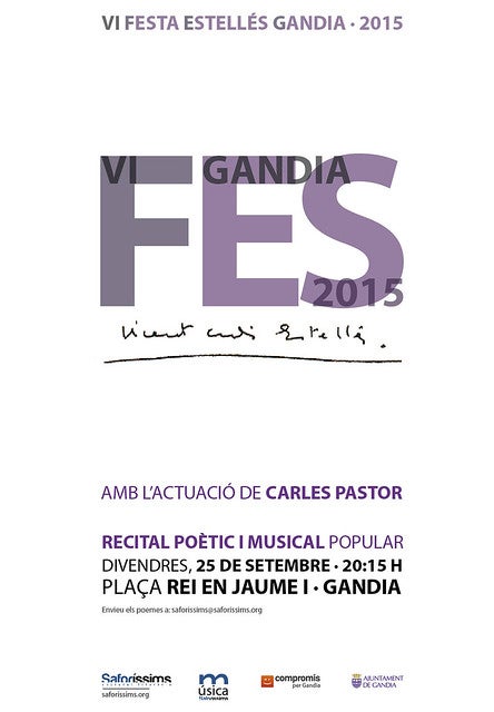 La plaça rei En Jaume I de Gandia acollirà el pròxim divendres 25 de setembre, a partir de les 20:15h, una nova edició, la sisena, de la Festa Estellés Gandia, un recital poètic popular que ret homenatge al poeta de Burjassot, Vicent Andrés Estellés, una de les figures literàries valencianes més destacades del darrer segle.