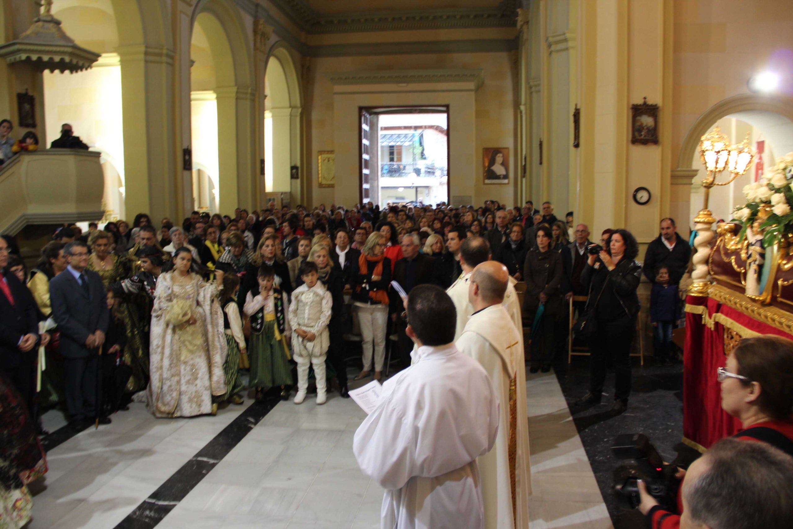 Diversos dels feligresos més veterans presents aquesta vesprada en l’església han recordat que fa uns anys la processó va haver de tornar precipitament a l’església ja que va començar a ploure molt forta quan es trobaven a l’altura del carrer Alacant. Així mateix recorden processionar al sant tapat amb un plàstic per a protegir-ho de la pluja. La inestabilitat del mes d’abril, plujós per excel·lència, també ha afectat en el passat actes de les Festes Patronals i de Moros i Cristians, que en ocasions van ser ajornats o suspesos.