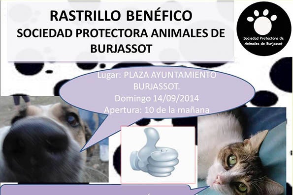La Societat Protectora d’Animals de Burjassot (SPAB) celebrarà un rastell benèfic amb l’objectiu de recaptar fons per a la seua comesa, fer-se càrrec dels animals abandonats a Burjassot, mentre aquests esperen trobar una llar definitiva.