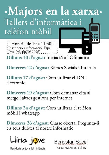 La regidoria Benestar Social i Joventut ha organitzat el curs “Majors en la xarxa”, que donarà començament dilluns que ve i es realitzarà al llarg del mes d’agost. Es tracta d’un taller que pretén acostar les noves tecnologies a la gent més major.
