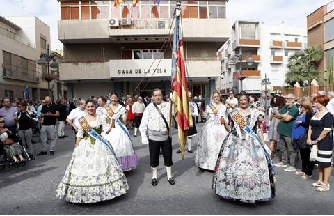 La processó, organitzada per l’Agrupació de Falles i l’Ajuntament, l’obrien les cases regionals i a continuació els presidents i falleres majors de les onze comissions de la ciutat, que custodiaven la Senyera. Darrere d’ells han desfilat els membres de la Corporació Municipal, encapçalats per l’alcalde, Carlos Fernández Bielsa, i el regidor de Festes, Toni Arenas. Després d’ells la banda de música del CIM i els representants de les entitats veïnals i altres ciutadans que han volgut sumar-se a esta celebració del 9 d’octubre.