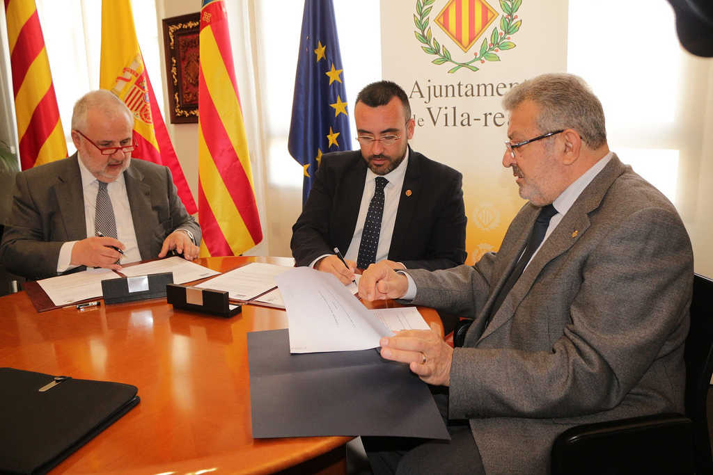 L’alcalde de Vila-real, José Benlloch, i el rector de la Universitat Oberta de Catalunya (UOC), Josep A. Planell, han signat el conveni pel qual l’Ajuntament cedeix gratuïtament l’ús d’un espai a la Biblioteca Universitària del Coneixement, situada a l’avinguda Pius XII, per a la posada en marxa de la seu de la UOC a Vila-real amb l’objectiu de promoure entre la ciutadania la formació universitària i oferir serveis d’assessorament i gestió acadèmica al col•lectiu d’estudiants de la ciutat i comarca.