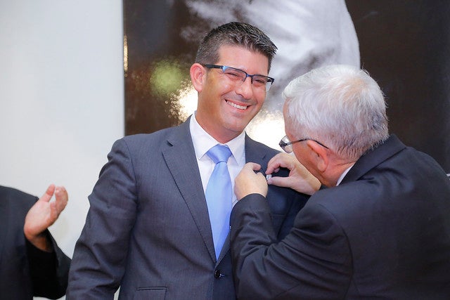 La Societat de Festers del Santíssima Crist de l’Agonia lliurava aquest diumenge la seua Insignia de Plata Menció Especial a l’alcalde d’Ontinyent, Jorge Rodríguez. Va ser al transcurs del tradicional acte de “L’Esmorzar de la Llàgrima”, un acte ple d’emotivitat que cada any serveix recordar el festers difunts, tot aprofitany per reconèixer als festers més veterans i a altres persones pel seu treball per la festa.