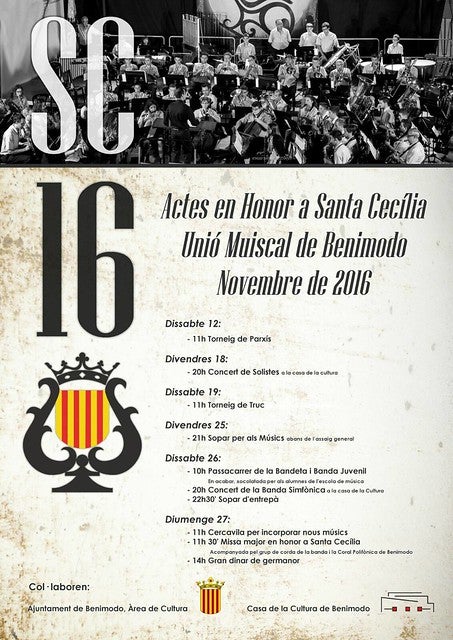 Col·laboren en l’organització de les diferents activitats tant l’ajuntament que comanda Paco Teruel com la Casa de la Cultura de Benimodo. Així, per al divendres 18 s’ha programat un concert de solistes en la Casa de la Cultura, amb inici a les 20 hores.