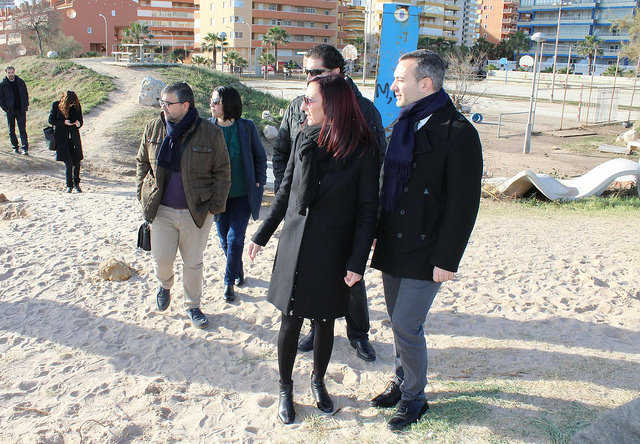 L’alcalde de Tavernes, Jordi Juan, i regidors de l’equip de govern han rebut este matí Maria Josep Amigó a la platja de la Goleta, que ha estat la més castigada pel temporal.