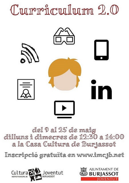 El servei dedicat als joves de l’Ajuntament de Burjassot, l’Agència Jove, ha llançat un nou curs de Curriculum 2.0 per a millorar la empleabilidad, dirigit a joves a partir de 16 anys. Es tracta d’un curs totalment gratuït per a desenvolupar, del 9 al 25 de maig, els dilluns i dimecres de 12:30 a 14 hores en l’Aula de Noves Tecnologies de l’Institut Municipal de Cultura i Joventut de Burjassot, en la Casa de Cultura.