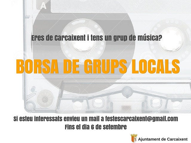 L’Ajuntament de Carcaixent, des de la Regidoria de Cultura i Joventut, ha obert el termini d’inscripció per poder formar part d’una borsa de grups de música local. Al registre poden participar grups de qualsevol estil musical, l’únic requisit per inscriure’s és que, almenys un dels seus membres, siga veïna o veí de Carcaixent. La primera acció de la borsa és participar dins de la setmana de festes. Concretament, es realitzarà un sorteig entre tots aquells grups l’estil musical de quals s’adapte més a l’activitat de festes de la que formarien part. Tots aquells que estiguen interessats haurien d’enviar, abans del 6 de setembre, un correu electrònic amb les seues dades a l’adreça festescarcaixent@gmail on se’ls informarà de la resta de passos a seguir.