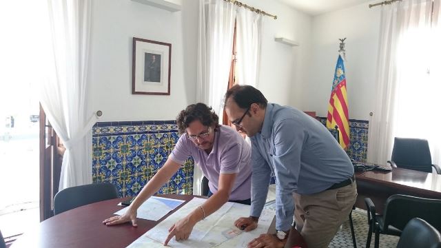 L’alcalde i el tècnic de la consultora Idom van recórrer amb les bicicletes municipals els diferents trajectes que travessen o travessaran el terme municipal per vore i analitzar els diferents punts febles on caldria actuar per tal de garantir les connexions adequades entre els diferents carrils de la xarxa previstos. Un treball que després van contrastar sobre els plànols juntament amb l’arquitecta municipal.