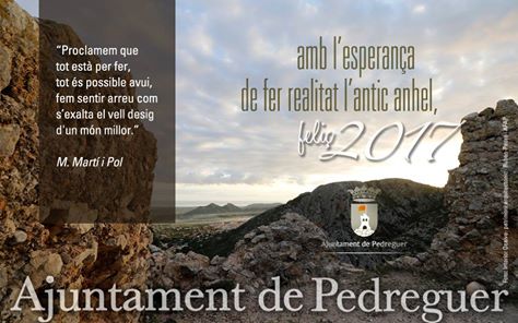 Amb l’esperança que entre tots i totes fem realitat l’antic anhel d’un món millor, l’Ajuntament de Pedreguer vos desitja un feliç 2017.
