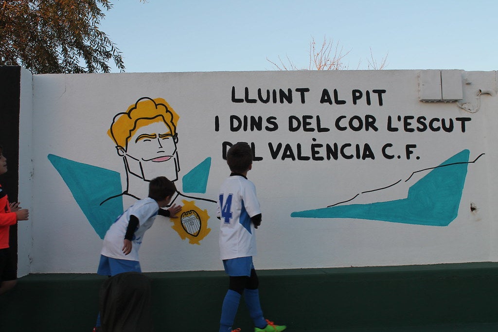 Es tracta d’un mural dividit en 24 panels i on l’artista, David Viadel, ha volgut transmetre la vida de Puchades en el moments més simbòlics i de més repercussió de la vida del jugador de futbol, com son els principis en el València CF, quan es va proclamar campió de lliga a l’any 1947 o quan va jugar amb la Selecció Espanyola en el campionat del món al Brasil.
