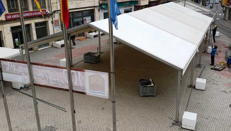 L’Ajuntament de Tavernes ha començat hui la instal·lació de l’envelat en la plaça Major per a celebrar la Nit de cap d’any amb una discomòbil, que donarà inici al nou any.